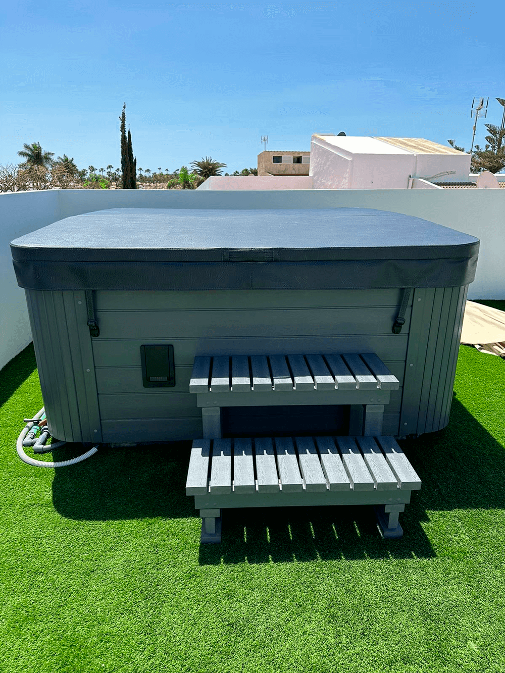 Unsere Anlage verfügt über insgesamt 4 Whirlpools, 2 auf jeder Etage des Solariums, die sich jeweils an einem Ende befinden. Um sie zu erreichen, müssen Sie nur die Wendeltreppe am Ende des Komplexes hinaufgehen, eine pro Gebäude (rechts und links). Die Whirlpools haben eine maximale Kapazität von 5 Personen.